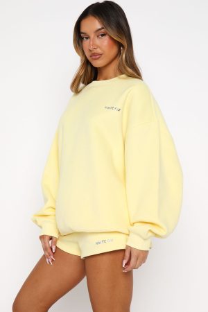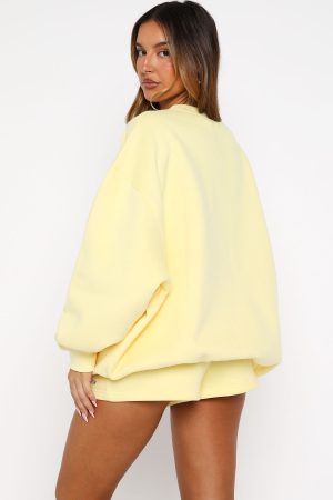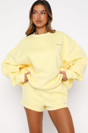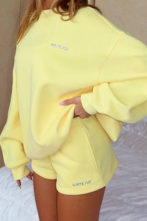 Lounge lovers are going crazy for the Test Drive Lounge Shorts in Lemon! Designed with a thick elasticated waistband featuring an internal drawstring tie. side pockets. and a relaxed silhouette. The White Fox puff print metallic text at the side adds a signature touch. while the unlined fleece interior ensures a cozy feel. Style with the matching Test Drive Oversized Sweater.