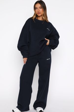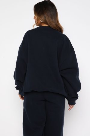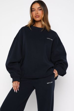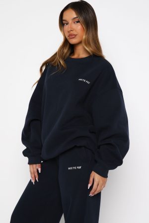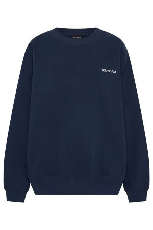 Lounge lovers are obsessed with the Test Drive Oversized Sweater Dark Navy! Designed with ribbed crew neckline. and ribbed hems which round out an oversized silhouette. Featuring long sleeves. and an unlined fleece interior. this sweater delivers a cozy feel. Finished with puff print metallic White Fox text side front. Completed the look with the matching Test Drive Lounge Shorts for a cosy yet cool look.