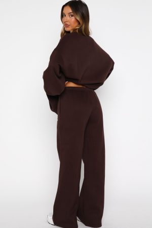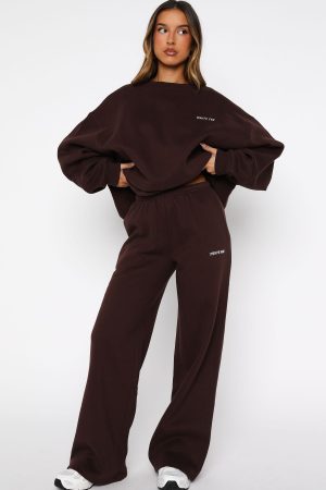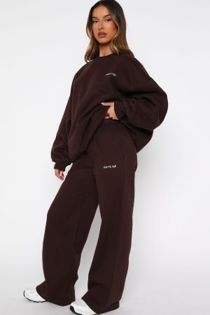 Lounge lovers are obsessed with the Test Drive Wide Leg Sweatpants Chocolate! Designed with a thick elasticated waistband featuring an internal drawstring tie. side pockets. and a wide-leg silhouette. The White Fox puff-print metallic text at the side adds a signature touch. while the unlined fleece interior ensures a cozy feel. Style with the matching Test Drive Oversized Sweater for a cozy yet cool fit.