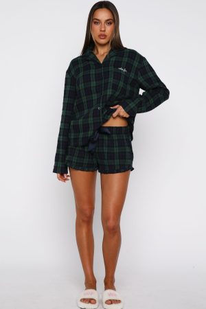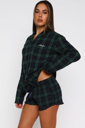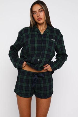 Feel oh so merry in The That Time Of The Year Pyjama Shorts in Green/Navy! Featuring a thick elasticated waistband with drawstring detail and a classic plaid pattern. these lightweight shorts offer a relaxed fit ideal for lounging. Pair them with the matching That Time Of Year Long Sleeve Pyjama Top Green/Navy and wait for Santa.
