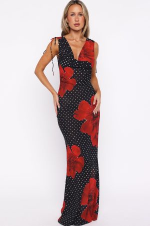 That’s Amore Maxi Dress Black Scarlet Bloom
