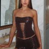 Birthday girl in full sparkle mode! The Glitterati Beaded Top Chocolate features thick shoulder straps and a V‑neckline framing a fitted bodice under an under‑bust seam. Crafted from high‑stretch fabric adorned in beading and sequins. it sparkles at every angle while the full lining keeps you totally polished. Style with your go-to denim jeans. layered gold jewellery and a statement bag.