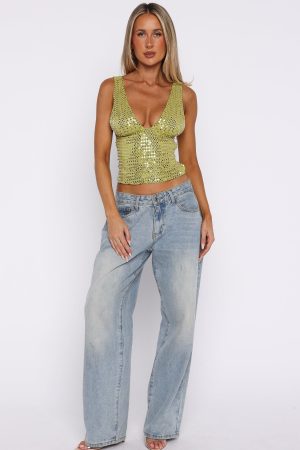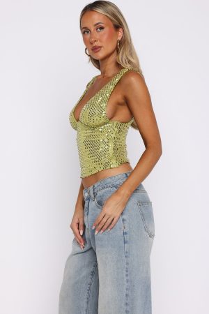 The Glitterati Beaded Top ChartreuseThe Glitterati Beaded Top Chartreuse