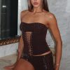Get girls night ready in the The Met Steps Bustier in Black! Features thick gathered shoulder straps and a subtle V-neckline. complemented by a non functional wrap front bust panels. The figure-hugging silhouette is enhanced with a corsetry-inspired lace-up back and internal boning. offering both style and support. Style with your fav denim jeans and kitten heels for a look we love.