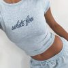 The Original Baby Tee in Blue is made for easy days and effortless style. Features short sleeves. cursive embroidered White Fox text centre‑front. a fitted silhouette. and soft stretch fabric for all‑day comfort. Style with your go-to denim jeans. sandals and layered gold jewellery for an understated but cool fit!