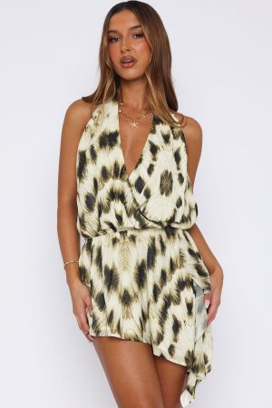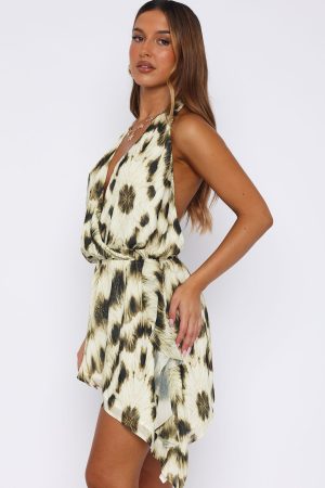 The Time Of My Life Halter Mini Dress in Gilded Touch is the definition of feminine! Features spaghetti self tie halter straps. low plunge neckline. elasticated waistband for a cinched waist. asymmetrical skirt with tassel detailing. backless and lined. Complete the look with heels and gold jewellery for a summers day vibe!
