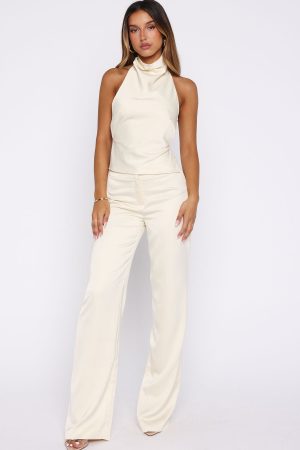 The Time Passes Dress Pants in Pearl effortlessly blend chic with comfort. Crafted from silky fabric. they feature a fixed waistband with hook-and-bar. zipper. and button closures for a secure fit. The wide-leg silhouette offers a flattering. relaxed look. while the fully lined design ensures a smooth finish. Style with the Time Passes Halter Top Pearl and kitten heels!