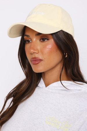 Set the pace in the Time To Travel Cap Baby Lemon. Features a White Fox printed logo centre front and snapback closure. Team this with any of our WFA collection for your next hot girl walk fit’!