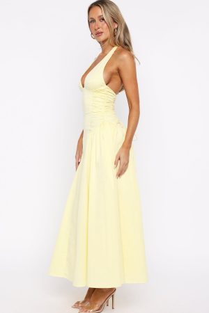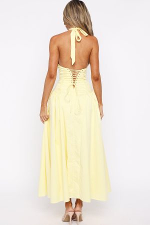 Tags: buystructure:fashion, clothing, colour:yellow, description_cleaned_au, discountable, discountable_uk, discountable_us, Division:Fashion, dresses, end-use:day, fabric-type:60-cotton-35-nylon-5-spandex, fabric:cotton, feed-cl0-newarrivals, feed-cl2-fullpriceau, feed-cl2-fullpriceuk, feed-cl2-fullpriceus, feed-cl4-spring, feed-cl4-summer, halter, halterneck, length:sleeveless, midi-dresses, New Arrivals, new_arrivals_au, new_arrivals_uk, new_arrivals_us, pattern:plain, recently_added_2025-12-09, SALE40, season:summer, size:l, size:m, size:s, size:xl, size:xs, size:xxs, sizeguide:clothes, subcat:midi-dresses, subcategory:Midi Dresses, tone:Lemon