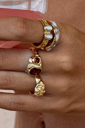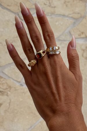 Take your look from beachside chic to bar ready with the Tinsley Ring Set in Gold. Featuring a curated stack of battered‑gold bands adorned with an array of gem details. this versatile set brings effortlessly luxe texture and sparkle to every moment.
