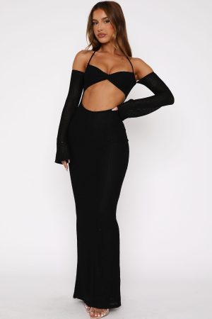 Introducing the cutest resort dress you’ll ever see! The To The Beach Long Sleeve Maxi Dress Black features a halter style neckline with self-tie straps. plunge neckline. attached long sleeve design with a slight flare. lined fabric. front cut-out design. hidden centre back zipper with hook & eye. maxi length and back split hemline.