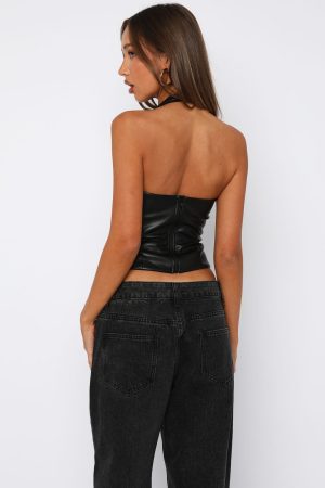 Turn heads in the Too Much To Handle Pu Top in Black! Designed for a second skin fit this top features a fixed halter neck design. subtle sweetheart neckline. front panelling for a structured waist. lined material and invisible zipper with hook and eye closure centre front. Be the baddie that you are by pairing with denim jeans and clear heels!