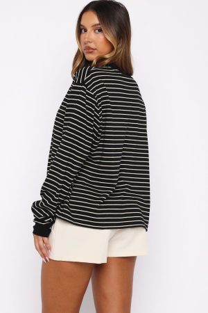 Instantly polished in stripes. The Touchdown Long Sleeve Tee in Black Stripe features a clean crew neckline. long sleeves with ribbed cuffs. a relaxed silhouette. and a timeless stripe pattern. Pair with White Fox denim. sunnies. and a cap for the ultimate brunch-ready vibe.