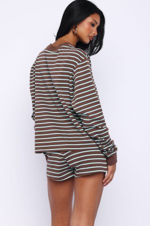 Tags: buystructure:fashion, Casual Sets, clothing, colour:brown, discountable, discountable_uk, discountable_us, Division:Lounge, end-use:day, fabric-type:100-cotton, feed-cl0-newarrivals, feed-cl2-fullpriceau, feed-cl2-fullpriceuk, feed-cl2-fullpriceus, feed-cl4-autumn, feed-cl4-spring, feed-cl4-summer, length:long-sleeve, matching-set:yes, New Arrivals, new_arrivals_au, new_arrivals_uk, new_arrivals_us, pattern:plain, recently_added, recently_added_2026-02-23, season:transeasonal, set-mix:top-short, sets, shorts-sets, size:3xs/xxs, size:l/xl, size:m/l, size:s/m, size:xs/s, size:xxs/xs, sizeguide:clothes, stripe, subcat:t-shirts, subcategory:Long Sleeve Tops, subcategory:Sets, tone:Chocolate/Blue Stripe, tops, two-piece-sets