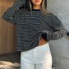 Instantly polished in stripes. The Touchdown Long Sleeve Tee in Chocolate/Blue Stripe features a clean crew neckline. long sleeves with ribbed cuffs. a relaxed silhouette. and a timeless stripe pattern. Pair with the matching Touchdown Relaxed Shorts Chocolate/Blue Stripe. sunnies. and a cap for the ultimate brunch-ready vibe.