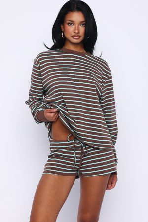 Tags: bottoms, buystructure:fashion, Casual Sets, clothing, colour:brown, discountable, discountable_uk, discountable_us, Division:Fashion, end-use:day, fabric-type:100-cotton, feed-cl0-newarrivals, feed-cl2-fullpriceau, feed-cl2-fullpriceuk, feed-cl2-fullpriceus, feed-cl4-autumn, feed-cl4-spring, matching-set:yes, New Arrivals, new_arrivals_au, new_arrivals_uk, new_arrivals_us, Non Lounge Shorts, pattern:plain, recently_added, recently_added_2026-02-23, season:transeasonal, set-mix:top-short, sets, shorts, shorts-sets, size:l, size:m, size:s, size:xl, size:xs, size:xxs, sizeguide:clothes, stripe, subcat:fashion-shorts, subcategory:Relaxed Shorts, subcategory:Sets, tone:Chocolate/Blue Stripe, two-piece-sets