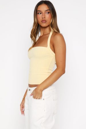 Tags: buystructure:fashion, clothing, colour:yellow, description_cleaned_au, discountable, discountable_uk, discountable_us, Division:Basics, end-use:day, fabric-type:60-cotton-35-rayon-5-elastane, feed-cl0-newarrivals, feed-cl2-fullpriceau, feed-cl2-fullpriceuk, feed-cl2-fullpriceus, feed-cl4-spring, feed-cl4-summer, Going Out Tops, halter, halterneck, length:sleeveless, New Arrivals, new_arrivals_au, new_arrivals_uk, new_arrivals_us, pattern:plain, recently_added_2025-12-04, restocked_au, SALE40, season:summer, size:l, size:m, size:s, size:xl, size:xs, size:xxs, sizeguide:clothes, subcat:basic-tops, subcategory:Going Out Tops, tone:Lemon, tops