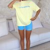 Weekend Dress Code: The Tropic Rush Bike Shorts Lemon! Featuring a thick. supportive waistband. a figure hugging silhouette. an unlined design in high-stretch fabric. and a White Fox print logo at the front side. Style with the Daydreamers Tropic Rush Oversized Tee and your fave sneakers and sunnies for a cool girl look.