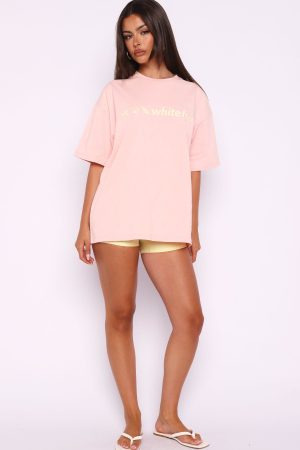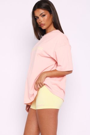 Weekend Dress Code: The Tropic Rush Oversized Tee Pink! Featuring a ribbed crew neckline. relaxed drop shoulder design. breezy short sleeves an over sized silhouette. Finished off with a White Fox logo text centre front. Pair with the matching Tropic Rush Bike Shorts for an outfit worthy of stares!
