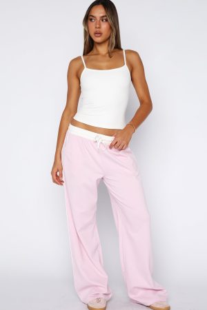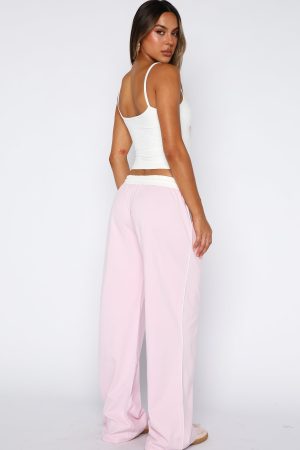 We’re living our sporty‑spice moment in the True Feelings Wide Leg Pants in Baby Pink. Designed with a thick elasticated drawstring waistband. practical side pockets. and a relaxed wide‑leg cut accented by a thin. sporty white stripe. Style with a baby tee. sneakers. and a headband for a laid‑back yet effortlessly chic weekend look.