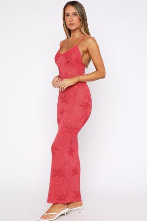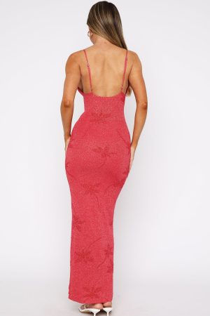 The perfect summer slip dress that does all the talking. fits in all the right places and as comfortable as ever! The Trust Issues Maxi Dress Red features thin. adjustable strap. low back design and unlined. gorgeous knit fabric. Complete the look with clear mules and gold accessories for a look that we love!