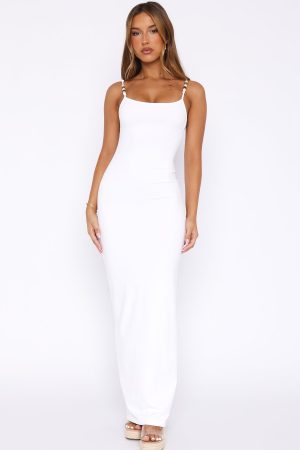 The perfect summer slip dress that does all the talking. fits in all the right places and as comfortable as ever! The Trusting You Maxi Dress Off White features thin. adjustable strap. low back design and unlined. gorgeous fabric. Complete the look with clear mules and gold accessories for a look that we love!