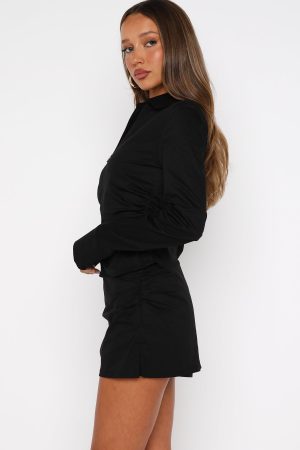 Wanting chic and sophisticated! Look no further than the Turn On The Light Long Sleeve Shirt in Black! Features a crisp collar neckline. long sleeves with sleek zipper cuff accents. a flattering center-front zipper closure. and subtle ruched side detailing for tailored flair. Complete the look with the You Give Me Something Mini Skort Black for a fit we love!