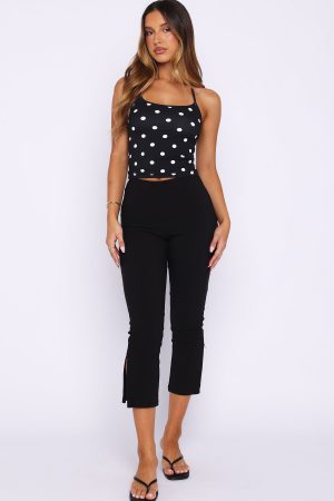The Unfollowed and Unbothered Capri Pants Black are a stylish statement of relaxed confidence. With a slim elastic waistband. these capris feature a sleek calf-skimming length with an invisible hem zipper and a secure side zipper with hook-and-eye closure. Crafted from a high-stretch fabric. they flatter your figure. Style with a cute tank top. kitten heels and layered gold jewellery.