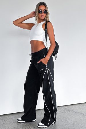 Style meets comfort in the Unphased Cargo Pants in Black. Featuring parachute pant design and a wide leg fit. drawstring with toggle. elasticated waistband. side pockets and lightweight fabric. Complete the look with a cute crop and sneakers for the perfect everyday street style fit!