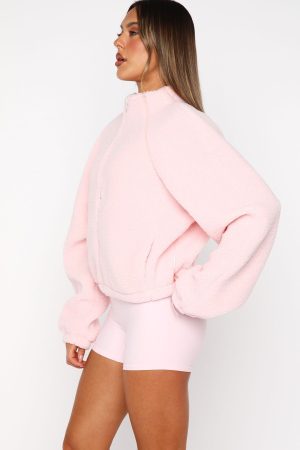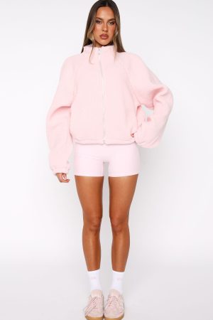 Stay cozy and chic with the Up The Hill Teddy Zip Up Jacket Ballet Pink. This sweater features a warm. fuzzy material and a collared neckline with a front zip closure. The elasticated. drawstring hem design allows for a customizable fit. Pair it over any active outfit to keep warm and stylish this winter season.