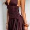 Living for these sunny moments. The Upgrade Me Mini Dress in Peachy Heat features thick self‑tie halter straps with floral charms and bead detailing. a flattering V‑neckline. and an elastic under‑bust seam for support. The draped waist with side ruching and a breezy handkerchief hem bring effortless movement. while the open back and high‑stretch. fully lined fabrication keep it chic. Style with statement heels and layered gold jewellery.