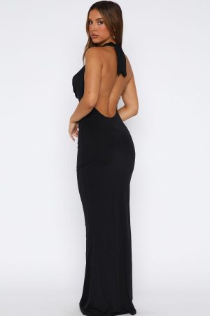 She’s Euro Summer ready in the Vacation Time Maxi Dress Black. Features a plunge neckline. halter neck style straps with back tie-up straps. sheer lining. backless. plunge neckline. maxi length and gorgeous printed fabric! Stand out at your next event and pair it with a mini bag and show off your look!