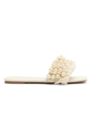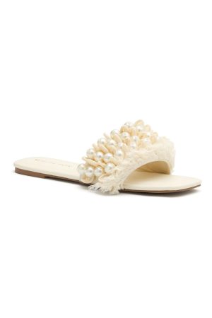 Welcoming the Valentina Sandals in Cream – your next wishlist must have! features an open square toe. rounded back heel and thick strap with fabric. and stunning pearl and shell detailing. Complete the look with a cute mini skirt and tank for a look we are obsessed with.