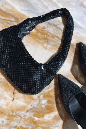 Complete your bday look with the Vanita Shoulder Bag in Black. Crafted with dazzling rhinestone crystal detailing. it features a comfortable shoulder strap and a secure zipper closure. It’s the perfect finishing touch for any party look.