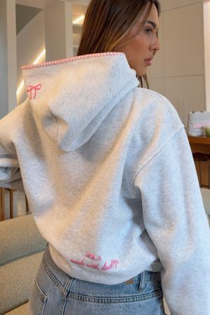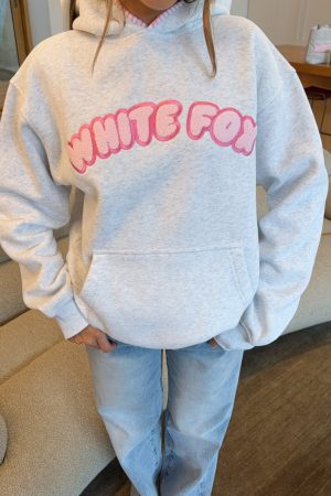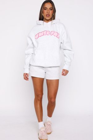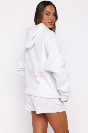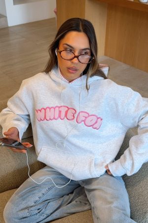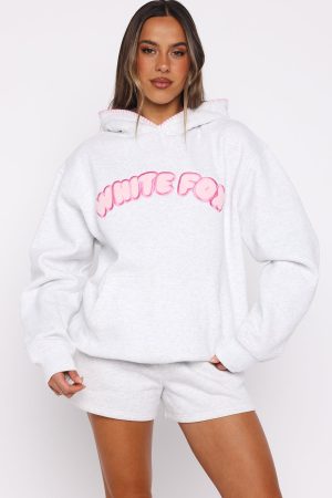 Unwind in style. The Vol. 1 Front Graphic Oversized Hoodie Grey Marle features a relaxed double-lined hood with exposed stitching. slouched shoulders and ribbed hems. which round out an oversized silhouette. Featuring long sleeves. a roomy front pocket. and an unlined fleece interior. this hoodie delivers a cosy feel. White Fox borg text embellishes the centre front. paired with a printed made with love text side back. Style with your go-to denim jeans and layered gold jewellery for a chill weekend fit.
