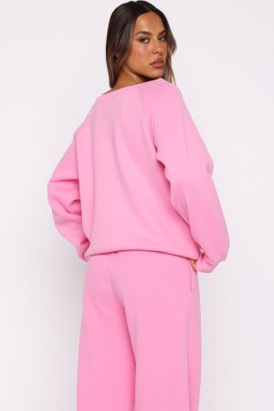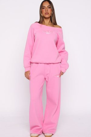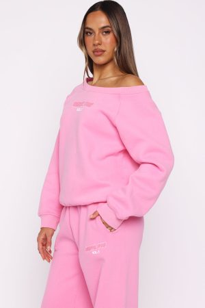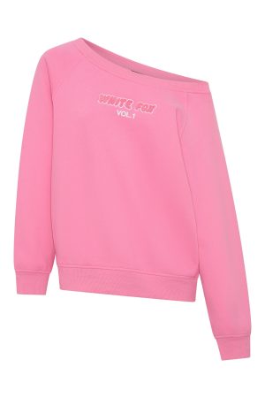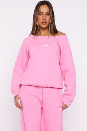 Comfort is an attitude. and this set embodies it. The Vol. 1 Off Shoulder Sweater Bubblegum is designed with an off-the-shoulder neckline and ribbed hems. which round out an oversized silhouette. Featuring long sleeves and an unlined fleece interior. this hoodie delivers a cosy feel. White Fox borg text embellishes the centre front. Style with the matching Vol. 1 Wide Leg Sweatpants Bubblegum.