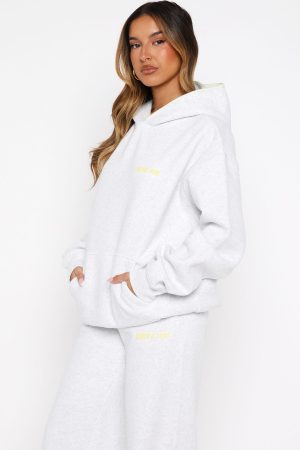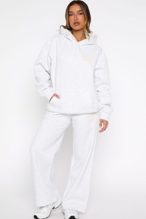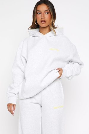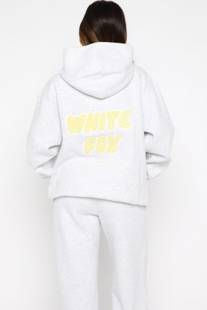 Comfort is an attitude. and this set embodies it. The Vol. 1 Oversized Hoodie in Grey Marle features a relaxed hood with exposed stitching. slouched shoulders and ribbed hems. which round out an oversized silhouette. Designed with long sleeves. a roomy front pocket. and a lined fleece interior. this hoodie delivers a cosy feel. White Fox woven text embellishes the side front and back. paired with printed made with love text. Style with the matching Vol. 1 Wide Leg Sweatpants Grey Marle.