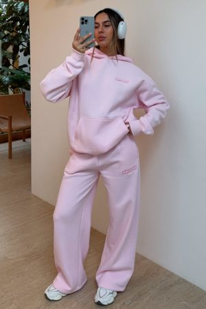 Comfort is an attitude. and this set embodies it. The Vol. 1 Wide Leg Sweatpants in Posy are designed with a thick elasticated waistband featuring an internal drawstring tie. side pockets. and a wide-leg silhouette. The White Fox woven text at the side adds a signature touch. while the unlined fleece interior ensures a cosy feel. Pair with the matching Vol. 1 Oversized Hoodie Posy.