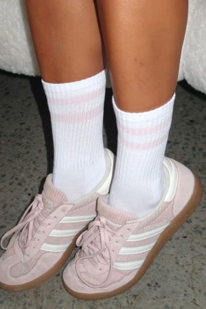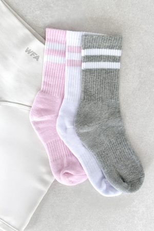 Pilates gals listen up your new favourite socks have arrived! The Wanna Be Close Socks in Grey/White/Pink features contrast colour detailing. ribbed ankle cuffs and arch band. Complete the look with a White Fox matching active set and tote bag for the perfect pilates gal fit.