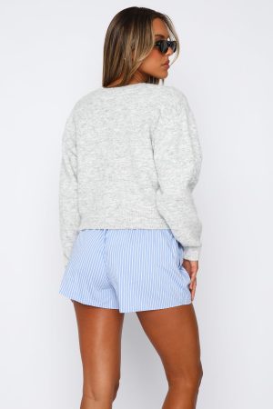 Say hi to your new favourite cardi! The Warm Whispers Knit Cardigan Grey Marle features a high neckline. front button closure. cropped fit with ribbing at hemline. drop shoulder and super soft. cosy knit fabric. Looks best paired with a cute boot and White Fox jeans for an instagram worthy fit’!