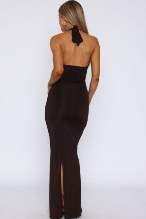 Waste A Moment Halter Maxi Dress ChocolateWaste A Moment Halter Maxi Dress Chocolate