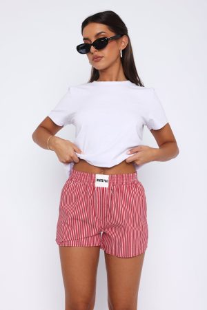 We’re obsessed with the boxer shorts trend that’s happening this summer. Features a thick elasticated waistband. front centre logo design. striped pattern and lightweight fabric. Pair with an oversized t-shirt for an on trend look!