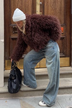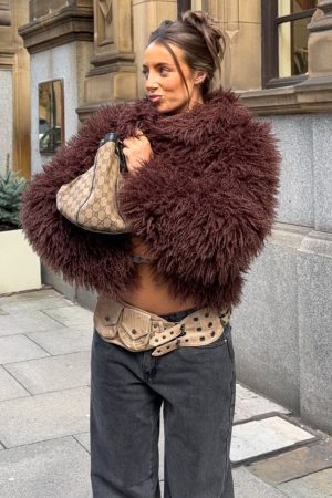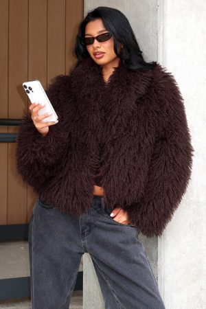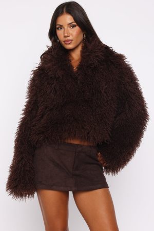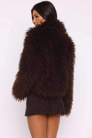 Have that old money look in the Weekend Away Fur Jacket in Chocolate! Features a collar neckline. slouched shoulders. long sleeve and lined for comfort. Pair effortlessly with a low rise jean. shades and your go-to gold accessories!