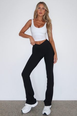 When it comes to activewear. these leggings have a flair for the stylish. These leggings have a mid-rise waist. feature printed logo centre back. cross-over front design and flare legs. We love this paired with the Work It Out Crop White for a look we love!