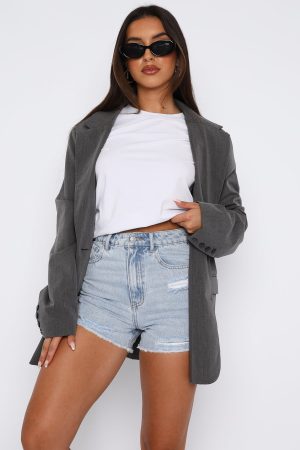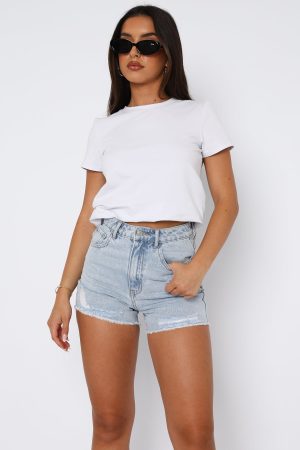 The What Are We Denim Shorts in Powder Blue Wash is a weekend essential! These high waisted denim shorts are high waisted with button closure and zipper. 5 pocket design. frayed hem and belt loops. Complete the look with a cute crop top and sneakers and slides for a look we love!