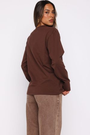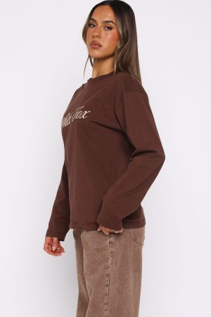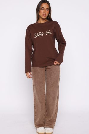 Wear it on repeat! The What The Heart Wants Long Sleeve Tee in Chocolate features a timeless crew neckline and relaxed silhouette with softly slouched shoulders offering effortless ease. Complete with long sleeves and cursive White Fox print across the front. Style with your fav denim jeans. sneakers and layered gold jewellery for a look we love.