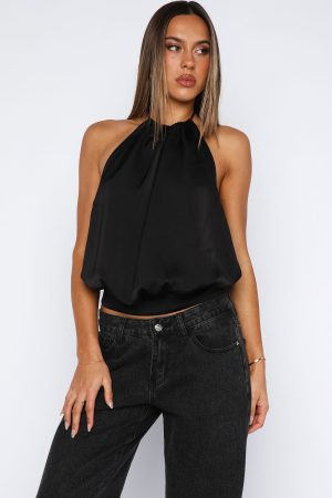 Turn heads in the What Was I Thinking Halter Top in Black! Features adjustable self-tie halter straps and a relaxed-fit bodice that gently drapes over the frame. while a structured wide waistband with a back-button closure ensures a flattering. secure fit. Finished off to perfection with a backless moment. Pair with your fav denim jeans. sandals and sunnies for the perfect trans-seasonal fit!