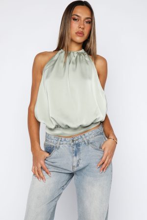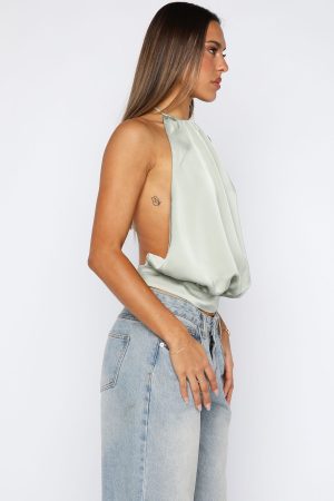 Turn heads in the What Was I Thinking Halter Top in Sage! Features adjustable self-tie halter straps and a relaxed-fit bodice that gently drapes over the frame. while a structured wide waistband with a back-button closure ensures a flattering. secure fit. Finished off to perfection with a backless moment. Pair with your fav denim jeans. sandals and sunnies for the perfect trans-seasonal fit!