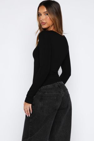 Update your winter basic with the Whisper To You Long Sleeve Top in Black! Features a feminine scoop neckline. long sleeve and soft lined fabric for that extra bit of warmth. Pair with your fav White Fox denim jeans. jacket and boots for the coziest fit!