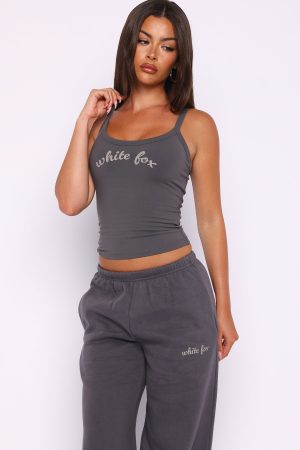 Cosy season essentials start with the Why Won’t You Singlet Top in Volcanic. With thick shoulder straps. a binded low scoop neckline. and a fitted silhouette. it’s finished with cursive puff-printed White Fox text and unlined. high-stretch fabrication for all-day comfort. Style it with the matching Why Won’t You Wide Leg Sweatpants in Volcanic and layer the Why Won’t You Oversized Drop Shoulder Sweater in Volcanic for a relaxed. coordinated look.